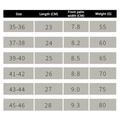 Size 37-38: Length: 24cm, Forefoot width: 8.2cm, Weight: 60g