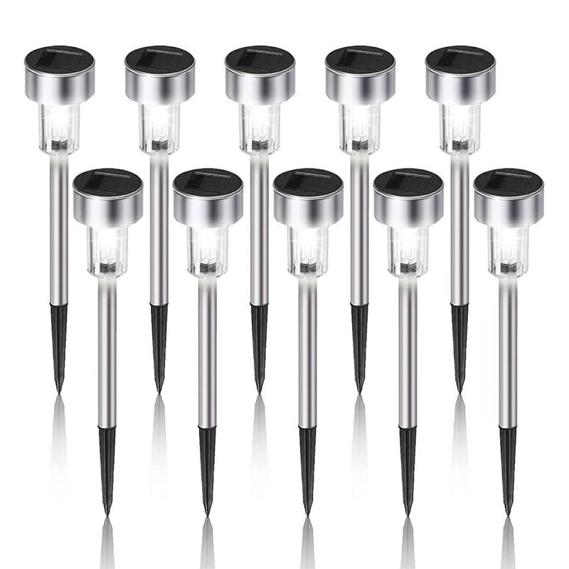 10-Pack Solar Stainless Steel LED Path Lights 5.5cm – IP65 Garden & Lawn Stake Lamps