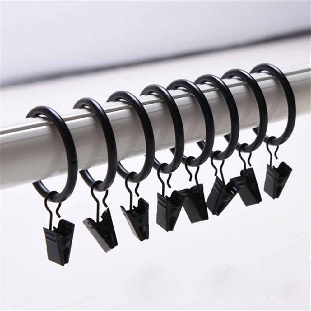 • 10-Piece Heavy-Duty Shower-Curtain Rings with Clips - Rust-Resistant Iron Hooks, 25 mm