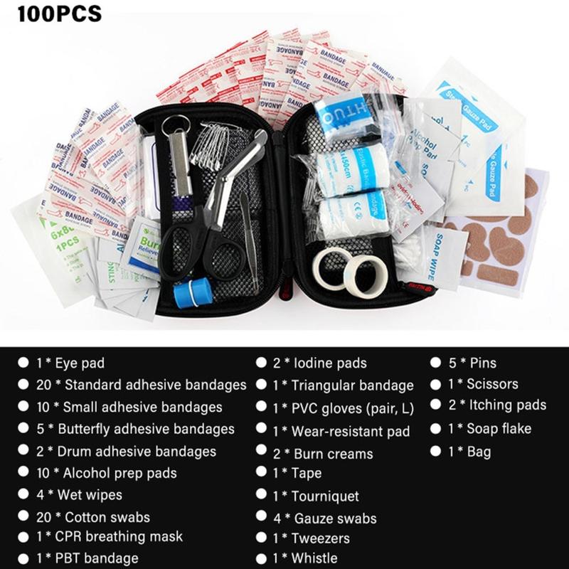 100-in-1 Emergency First Aid Kit with Waterproof Bag for Camping, Travel, Home