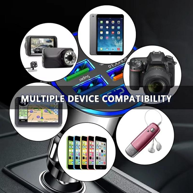 The 100W 6-Port Car Charger is built to keep all your devices powered on the go. With a total output of up to 100W, it’s powerful enough to charge laptops, tablets, and smartphones simultaneously, making it the perfect accessory for modern drivers.