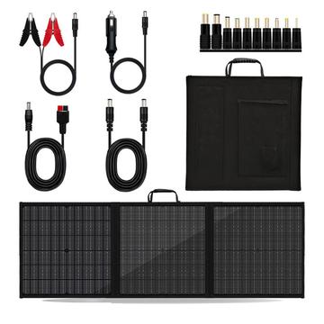 The 100W portable solar panel charger is designed for outdoor adventures, travel, and emergency power supply. Built with high-efficiency monocrystalline silicon solar cells, it delivers reliable solar energy while remaining lightweight and easy to transport. Thanks to its 3-fold design, the panel unfolds into a large charging surface and folds down compactly for storage. With multiple output interfaces including USB, USB-C, and DC, it supports charging of smartphones, tablets, cameras, drones, and portable power stations. The IP65 waterproof and dustproof construction ensures dependable performance in changing outdoor conditions.