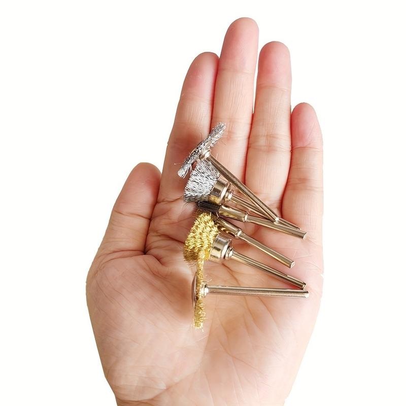 Give every rotary tool in your workshop new life with this versatile 12-piece steel wire brush kit. The set includes four pen-shaped, four bowl-shaped and four T-shaped brushes, each fitted with a standard 3mm shank that snaps straight into mini drills, electric grinders and hobby rotary tools. Whether you are stripping flaking paint from railings, polishing weld seams on stainless steel or clearing carbon deposits from engine parts, the high-tensile steel bristles bite through grime without gouging the base metal.