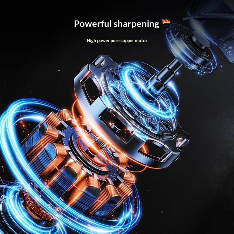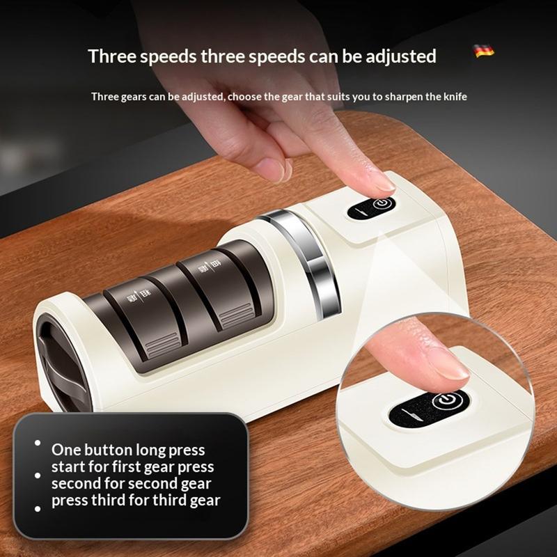 • 12W Cordless Electric Knife Sharpener with 3 Speed Settings and Diamond Grinding Wheel for Chef Knives