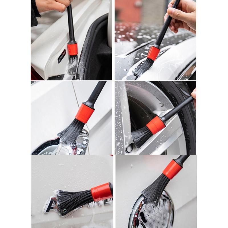 Our brushes have 5 different sizes, which can meet almost all of your needs. Smaller detailing brush can get into all little cracks, nooks, lug nuts or narrow spaces. Lager detailing brush can be used to clean exterior and wider areas like wheels, air vent, car seats and dashboard