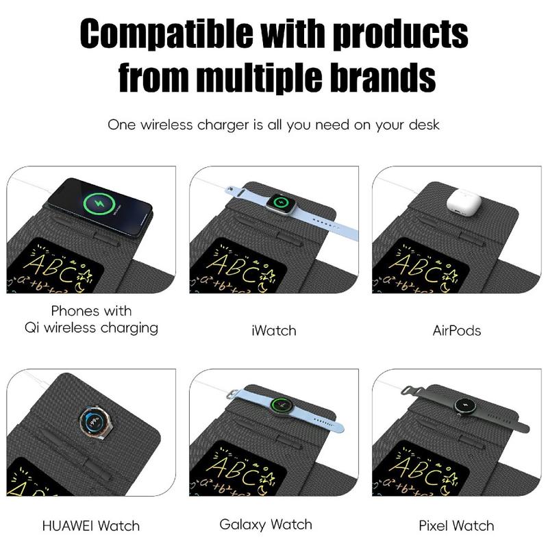 - 4-in-1 design: wireless charging pad, phone stand, mouse pad, and writing board