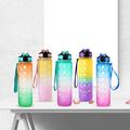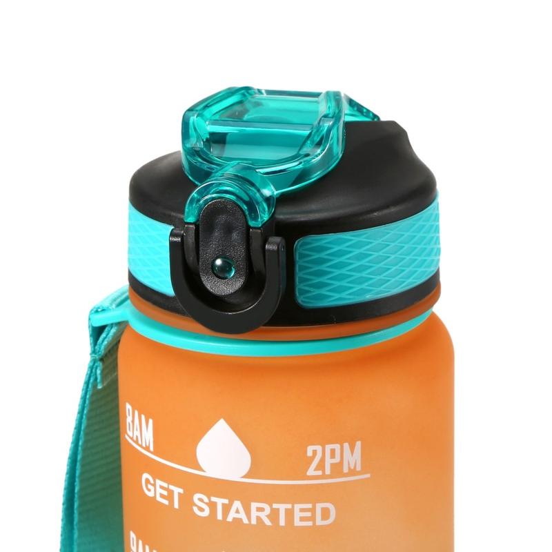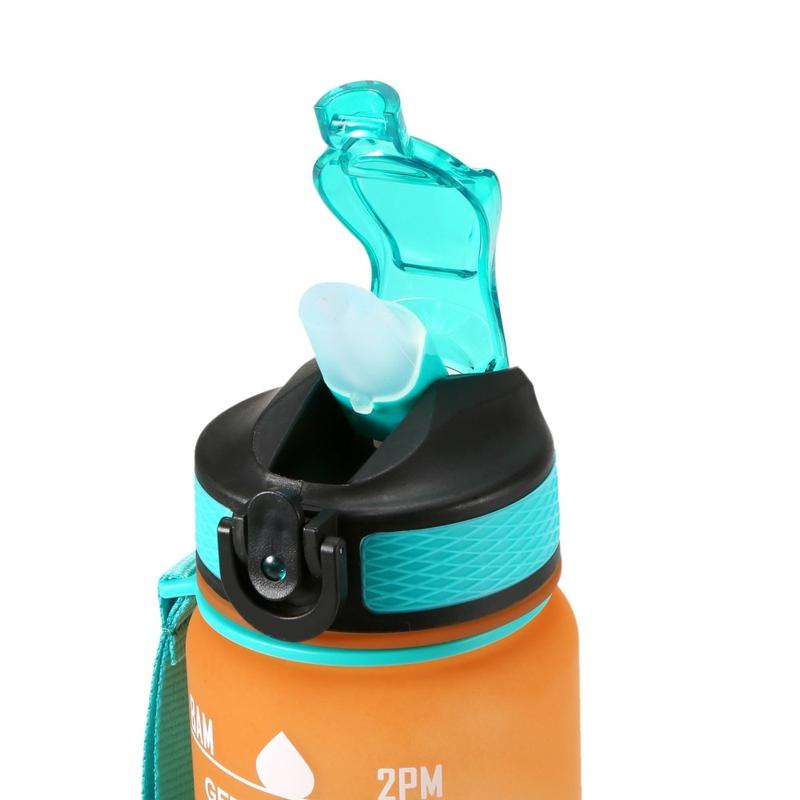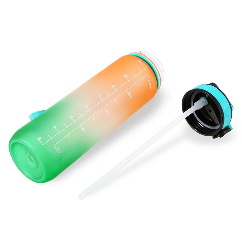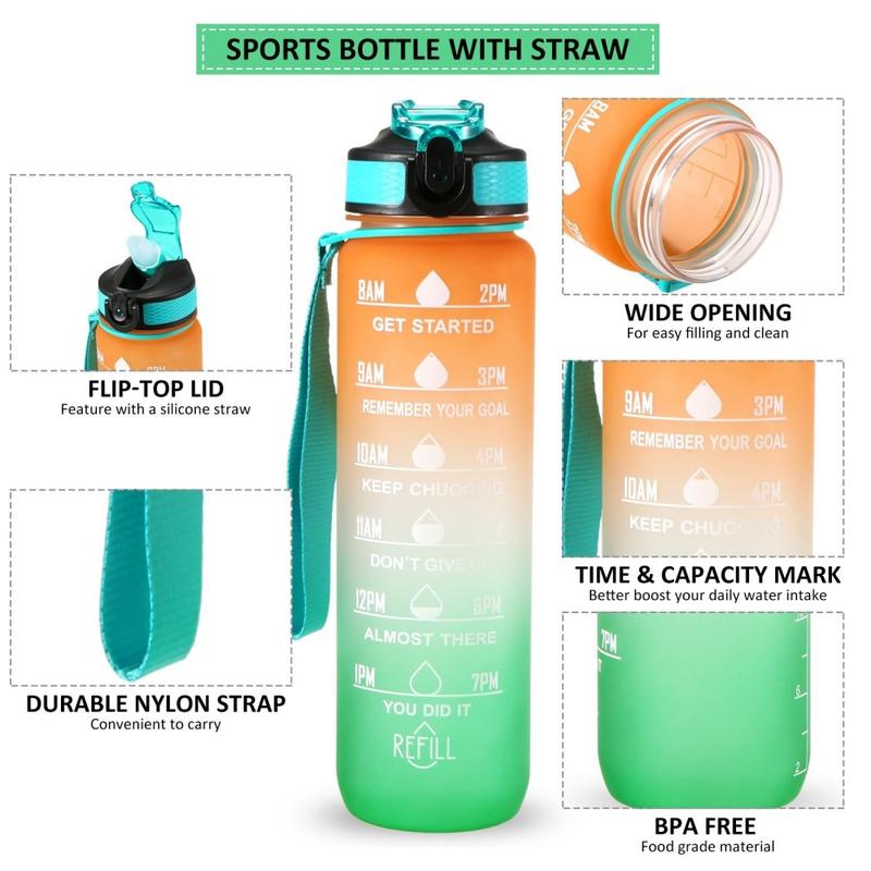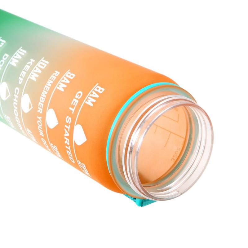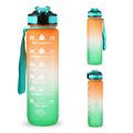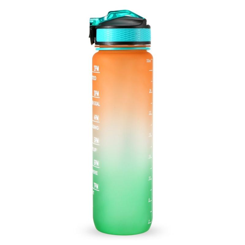 1L Sports Water Bottle with Time Marker Water Jug Leak proof Drinking Kettle for Office School Camping (BPA Free) - Orange/Green