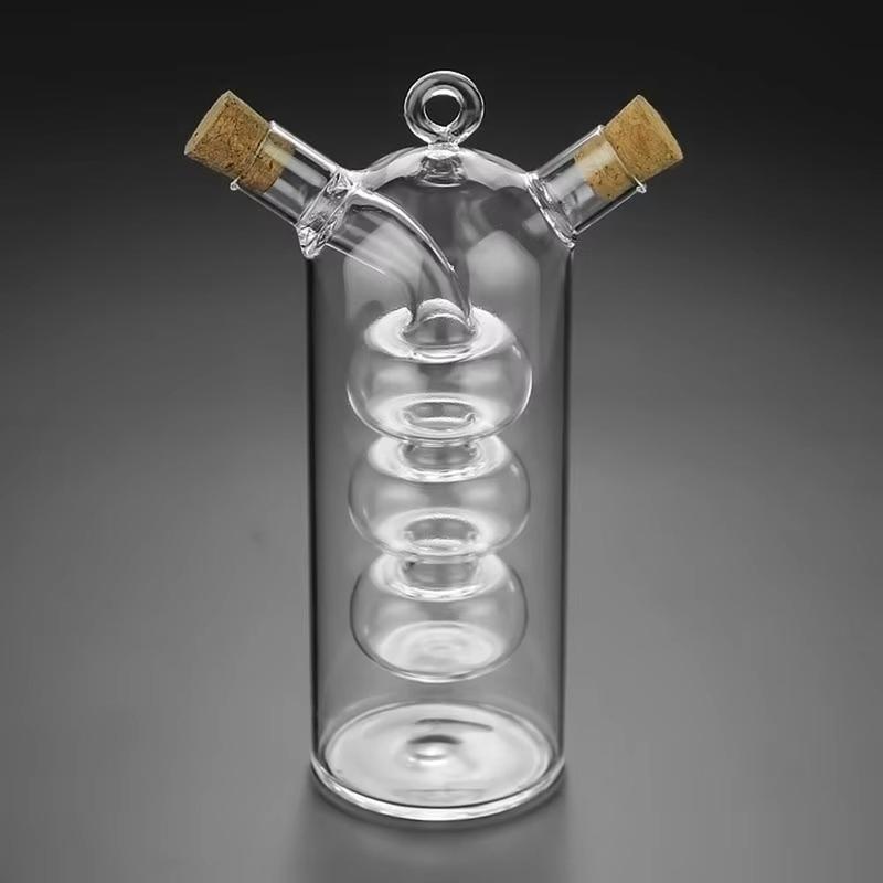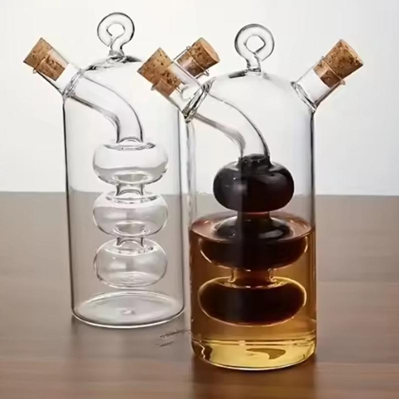The use of borosilicate glass in kitchenware is renowned for its resistance to temperature changes, making it ideal for storing various liquids without risk of cracking. Additionally, the dual-chamber design is inspired by traditional cruets, offering a modern twist to a classic concept.