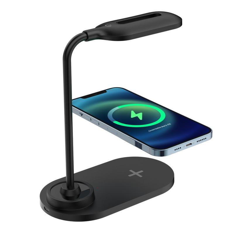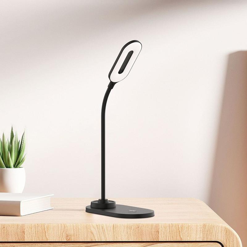 - 2-in-1 design combining an LED desk lamp and wireless charger