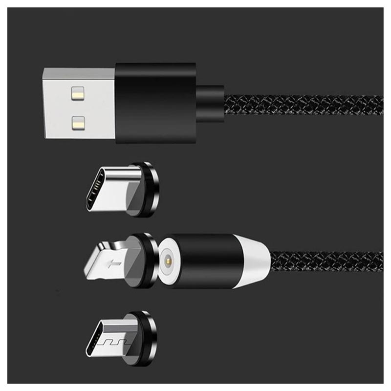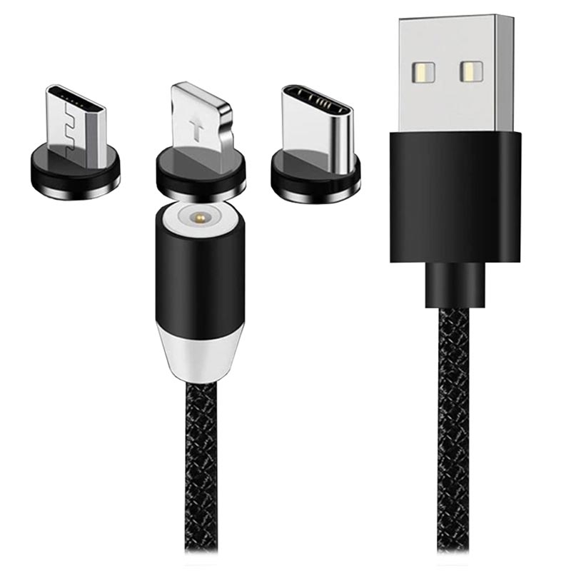 3-in-1 LED Magnetic USB Cable - Lightning, USB-C, MicroUSB - 1m