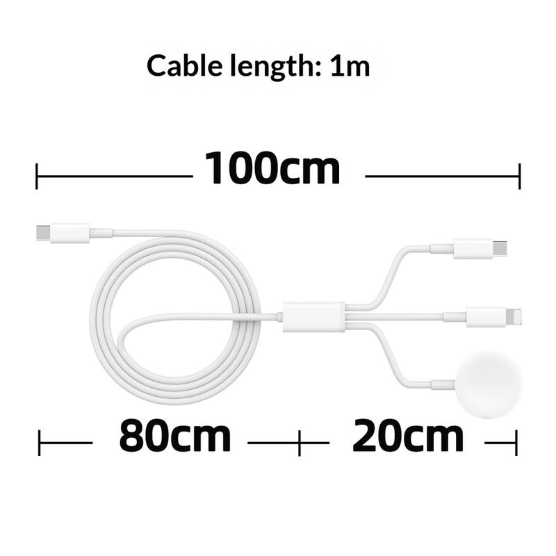 3-in-1 USB-C Charging Cable to USB-C, Lightning, Apple Watch Wireless Charger - 1m