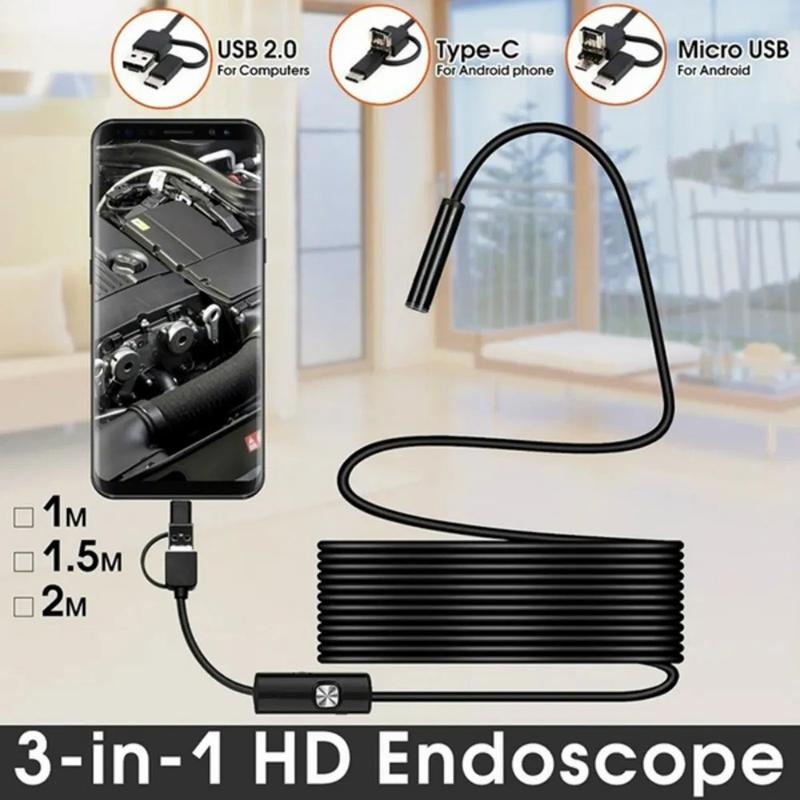 3-in-1 Waterproof 7mm Endoscope Camera for Mobile - USB, MicroUSB, Type-C - IP68