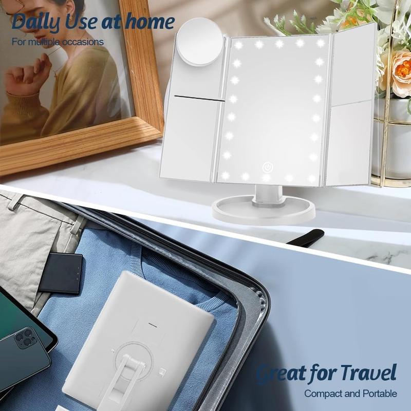 - Wide-Angle Viewing - The triple-panel design offers a comprehensive view of your face, making it easier to perfect every angle of your makeup and hairstyle.