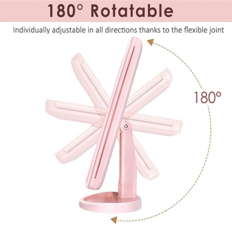 The 3-Side foldable LED makeup mirror combines elegant design with practical features like adjustable brightness and multiple magnifications. Its compact foldable form makes it both a beautiful vanity accessory and a convenient travel companion.