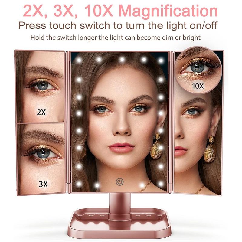 3-Side Foldable Makeup Mirror with 22 LED Lights - 1X/2X/3X/10X Magnifying Vanity Mirror