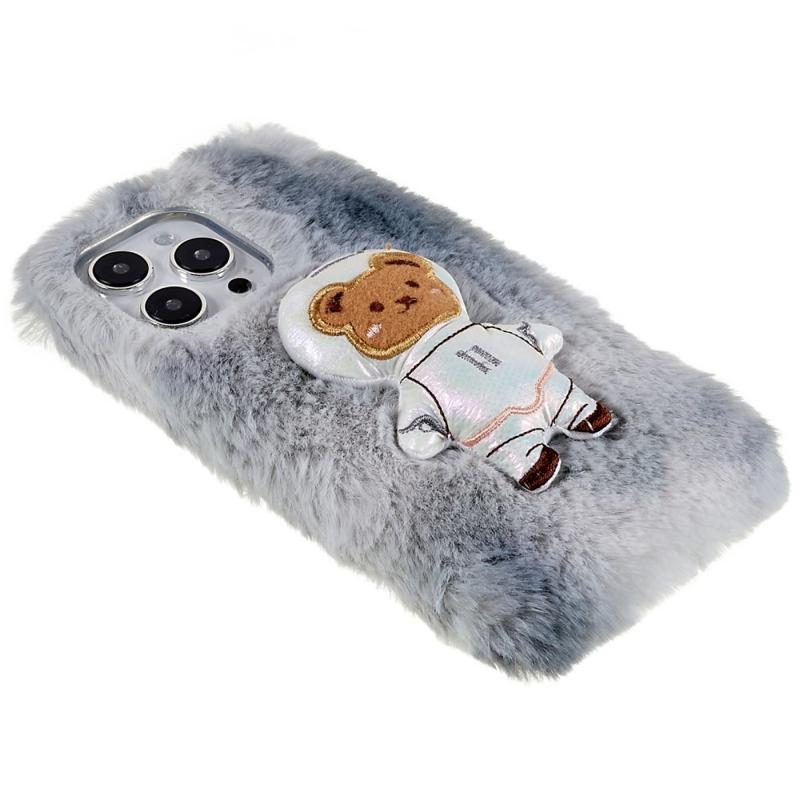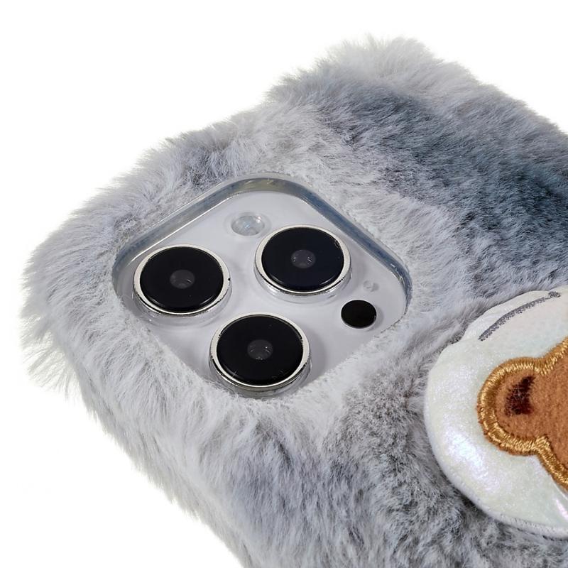 Winter Furry Phone Case for iPhone 14 Pro Max Anti-drop Cover Protective Shell with 3D Plush Doll