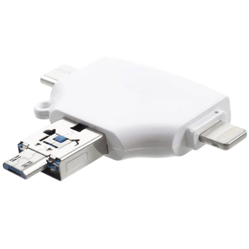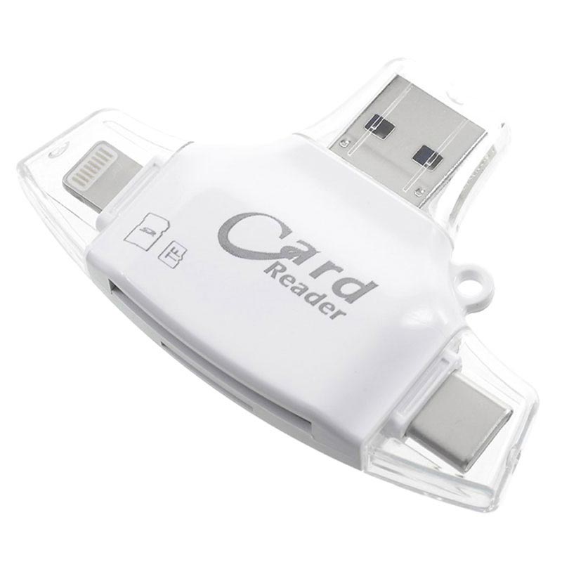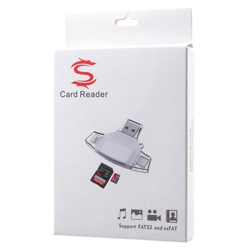 MicroSD / SD card reader with Type-C, microUSB, USB-A, 8-pin Lightning port