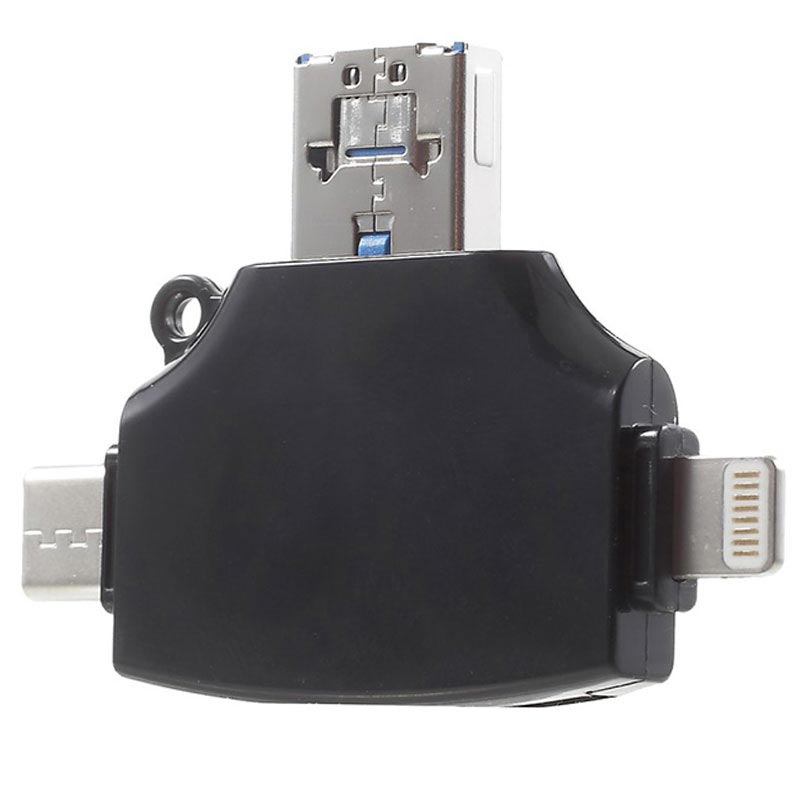 • MicroSD / SD card reader with Type-C, microUSB, USB-A, 8-pin Lightning port