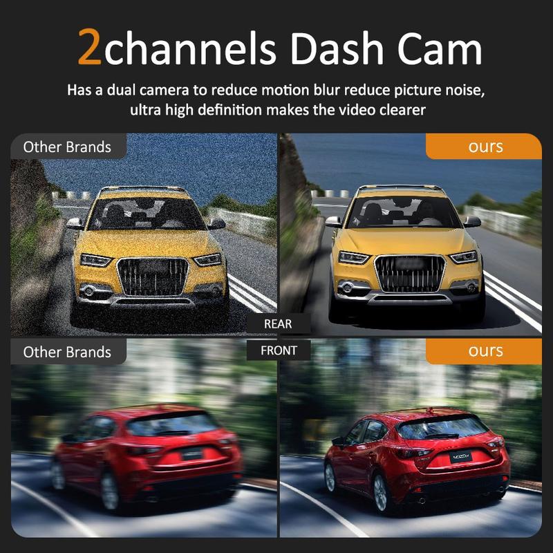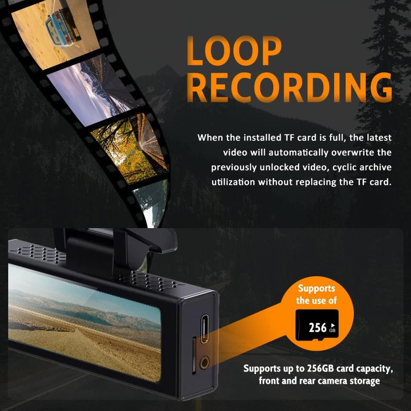 - Dual-lens recording with 4K Ultra HD clarity for both front and rear coverage