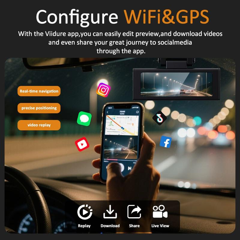 The 4K dual lens dash cam provides full-coverage, high-resolution recording for safer and more secure driving. The front and rear cameras capture clear 4K Ultra HD footage simultaneously, ensuring reliable video evidence for daily driving, road incidents or parking surveillance. With a 170° ultra-wide front angle, it significantly reduces blind spots and records more of your surroundings.