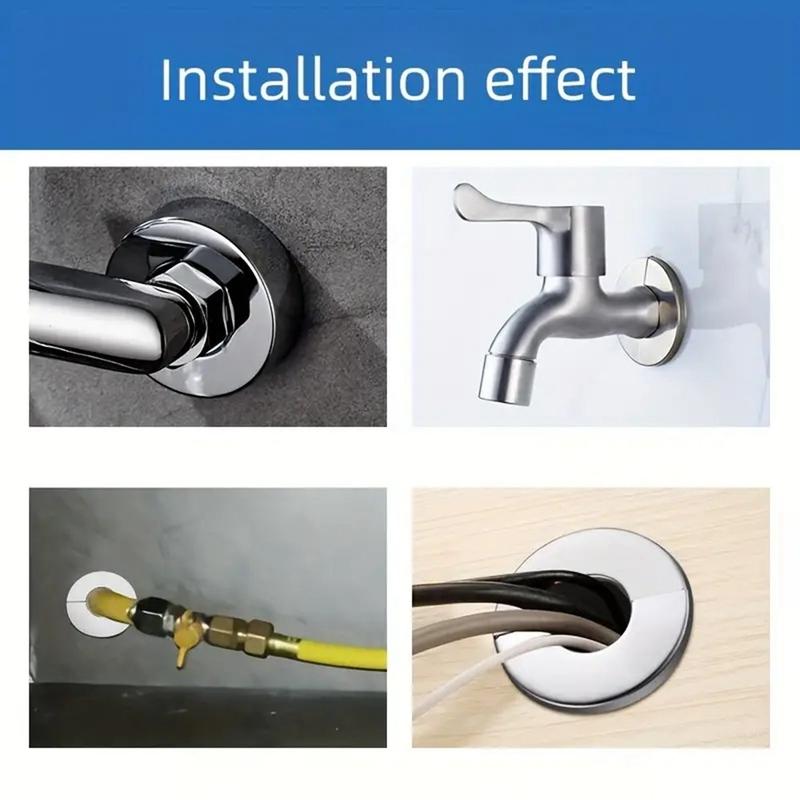 Conceal unsightly wall openings around pipes and faucets with these stainless steel round flange covers. Designed for quick, tool-free installation, the strong self-adhesive backing attaches directly over the hole to create a clean, polished look. Made from durable, rust-proof stainless steel, these covers resist high temperatures, maintain their shape, and offer long-lasting performance in kitchens, bathrooms, and utility areas.