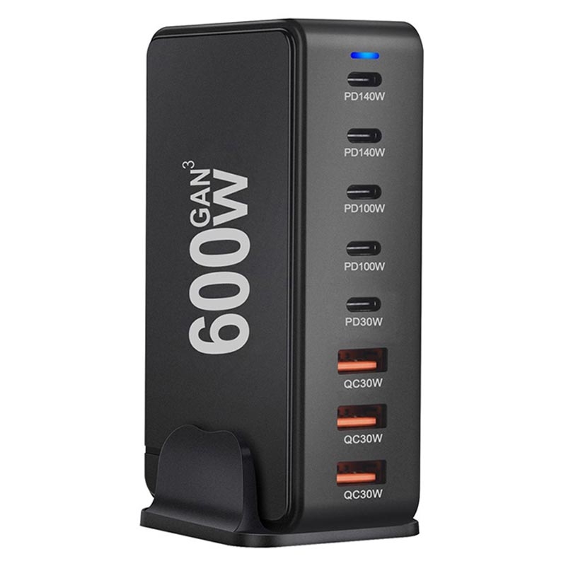 600W GaN Desktop Charging Station - 8 Ports (5x USB-C + 3x USB-A) PD3.1 Fast Charger, Up to 140W USB-C, Intelligent Power Distribution