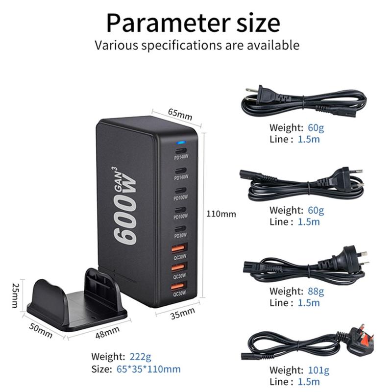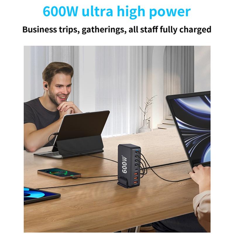 - Massive 600W total output for multi-device charging from one station