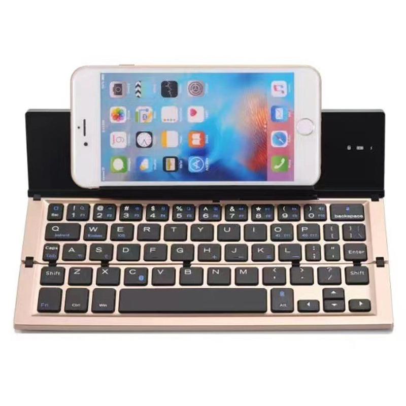 608 Tri-Fold Wireless Keyboard with Dual Channel Switching and Stand - Aluminum Alloy