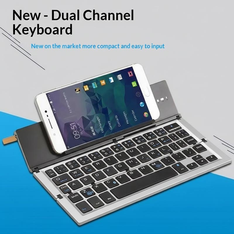 • 608 Tri-Fold Wireless Keyboard with Dual Channel Switching and Stand - Aluminum Alloy