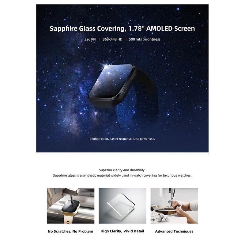 Scratch-resistant sapphire glass, a vivid 1.78-inch AMOLED display (368 × 448 px, 326 ppi, 500 nits) and a slim 9.8 mm aluminium case make the 70mai Saphir Watch a sleek companion for work, workouts and weekend retreats. Weighing only 32.2 g (without strap), it still lasts up to 10 days on a single 320 mAh charge.