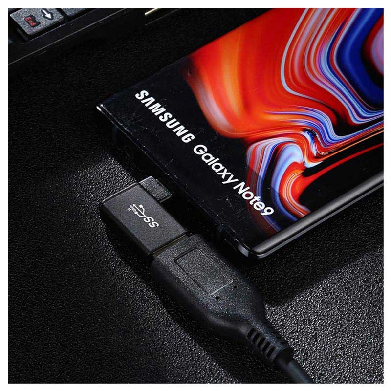 Transfer data from a USB stick or other device via USB cable to a device with a Type-C port up to 10Gbps! Plug and play, no drivers are required. A 90-degree angle makes it less likely to be pulled out accidentally and damage the port.