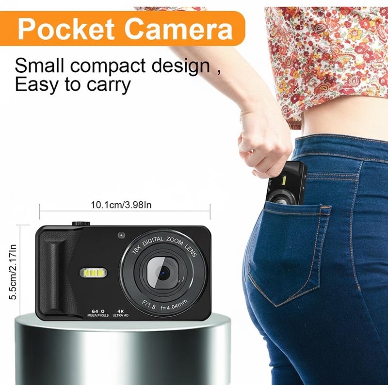 A59 Compact Digital Camera with 2.8″ IPS Screen - 64MP Photos, 18× Zoom, 2K Video (4K Interpolated)