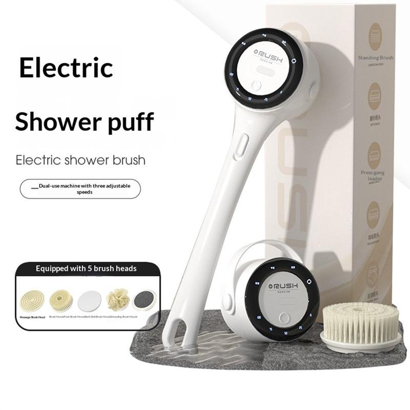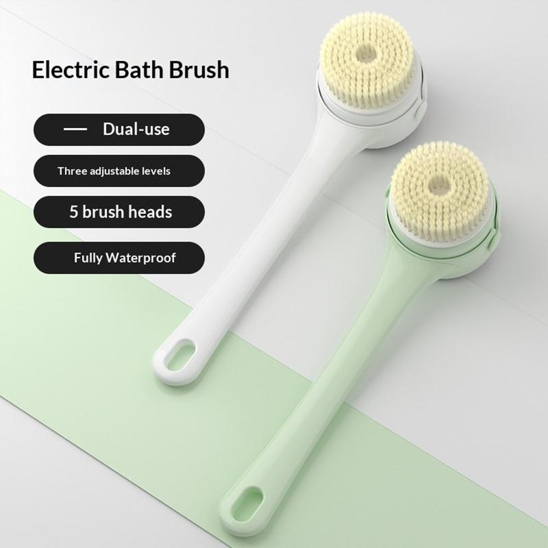 - Electric shower brush with long handle for easier full-body cleaning