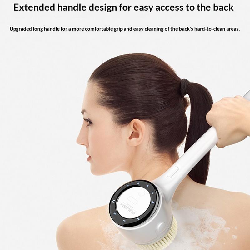 The extended handle makes it much easier to reach the back, legs, and other difficult areas without straining, making it ideal for everyday shower use. Its 360 dual-direction rotating brush head system, combined with three adjustable speed levels, gives you more control over your cleaning routine. Whether you prefer gentle daily cleansing, more intensive scrubbing, or a soothing massage effect, this electric bath brush adapts to different skin care needs.