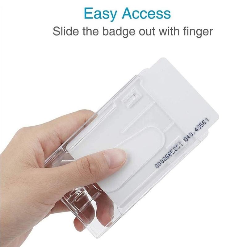 - Dual horizontal slots accept two standard 86 × 54 mm cards (ID + access, travel pass + staff badge)