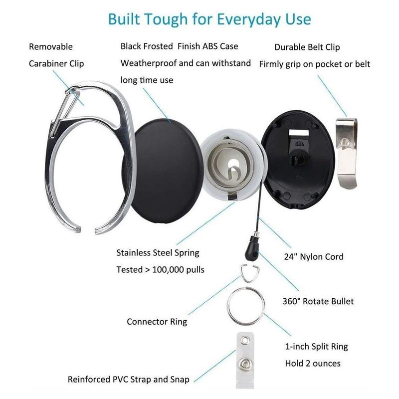 - Zinc-alloy retractable reel with 60 cm nylon cord for effortless tap-and-go scanning