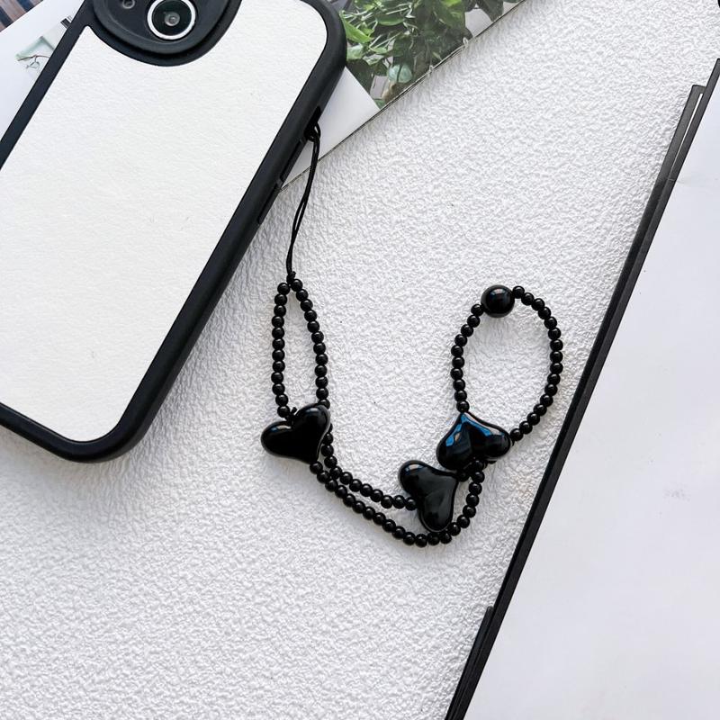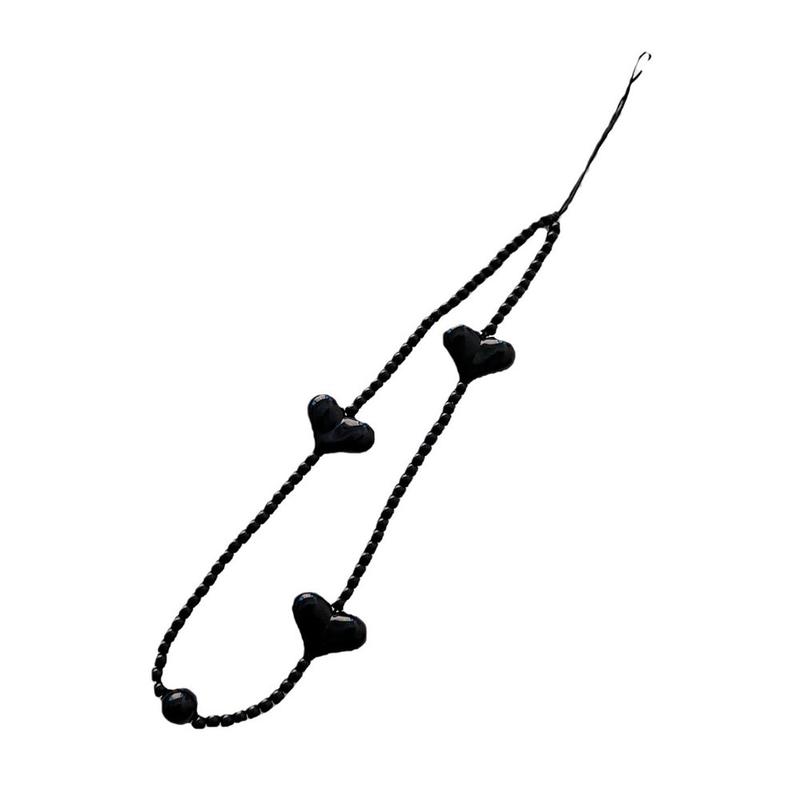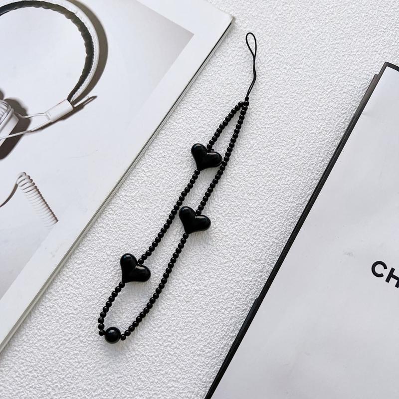 Add a playful and stylish detail to your phone with this 23.5cm heart beaded phone chain strap. Designed with glossy black heart-shaped acrylic beads, it works as both a decorative accessory and a practical wrist strap for everyday use.