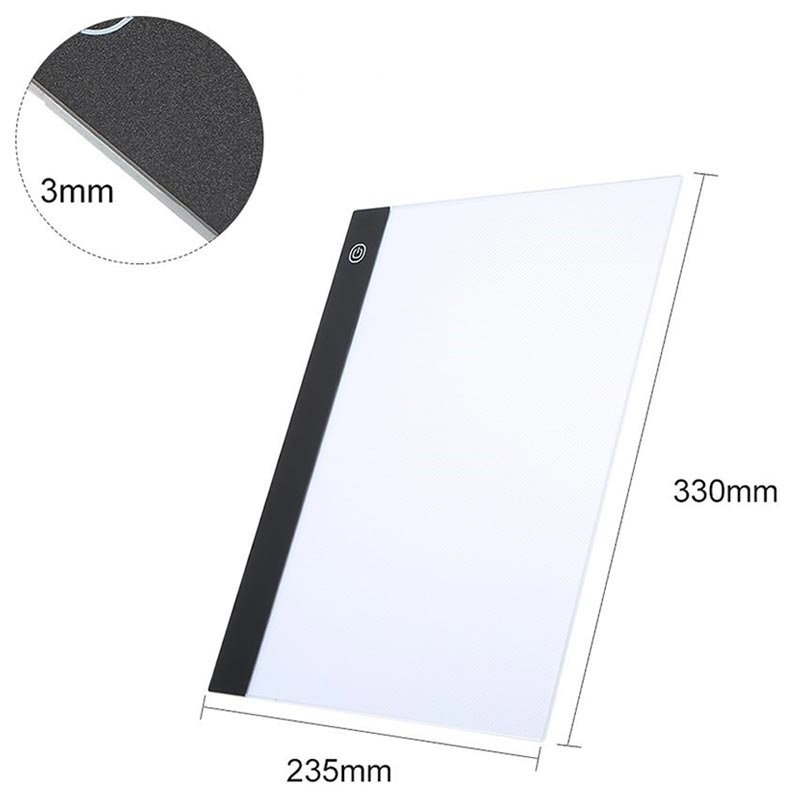 LED-Lit Acrylic Drawing Board / Tracing Pad with Smart Adjustable Brightness Memory - USB 5V, 235x330mm, A4