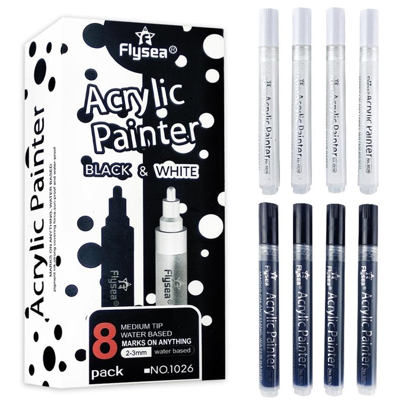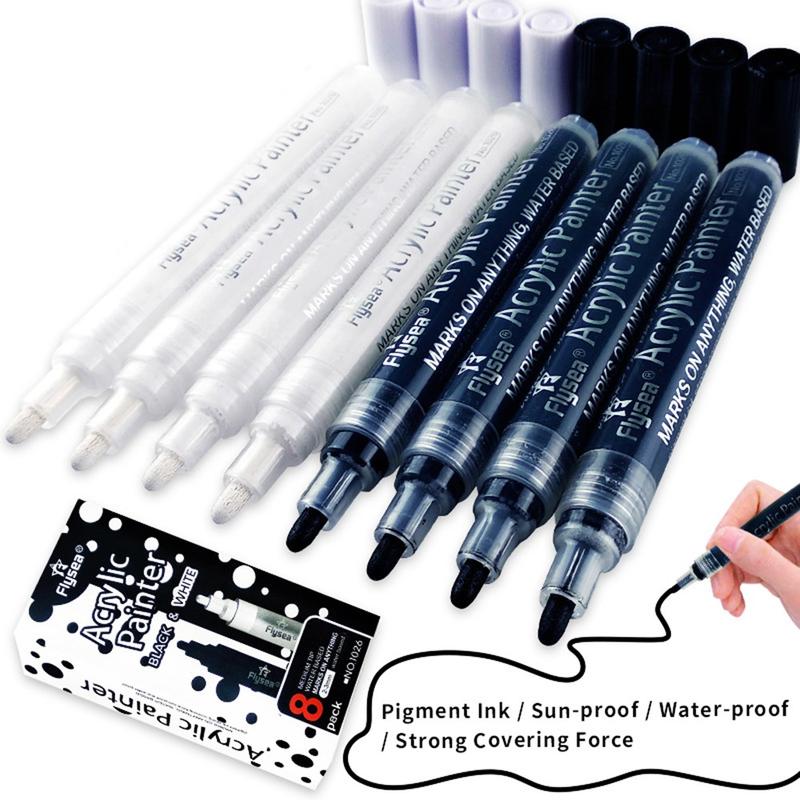 Box of 8 Pens: Conveniently packaged with an equal mix of black and white markers