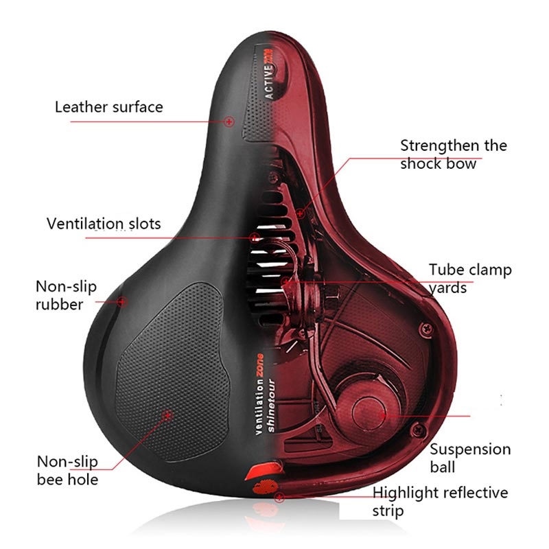 Wide Soft Padded Bike Seat - Shockproof Reflective Bicycle Saddle with Suspension Ball