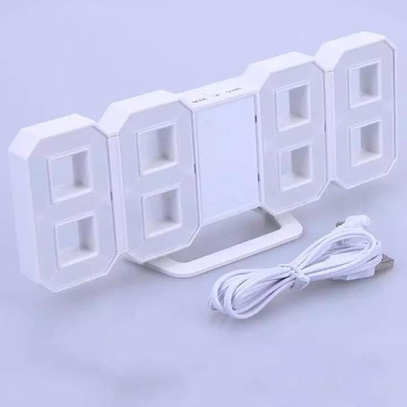 Beautiful decoration digital 3D LED electric clock for your home, office, wall, table. An extremely quiet clock will be a great partner beside you, whatever you are working or whenever you're sleeping. The clock shows the time in a white shade with white frames that that will surely please your eyes, both day and night.