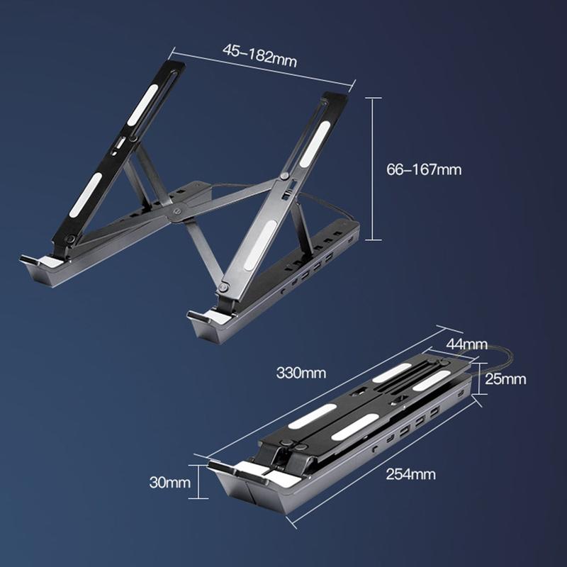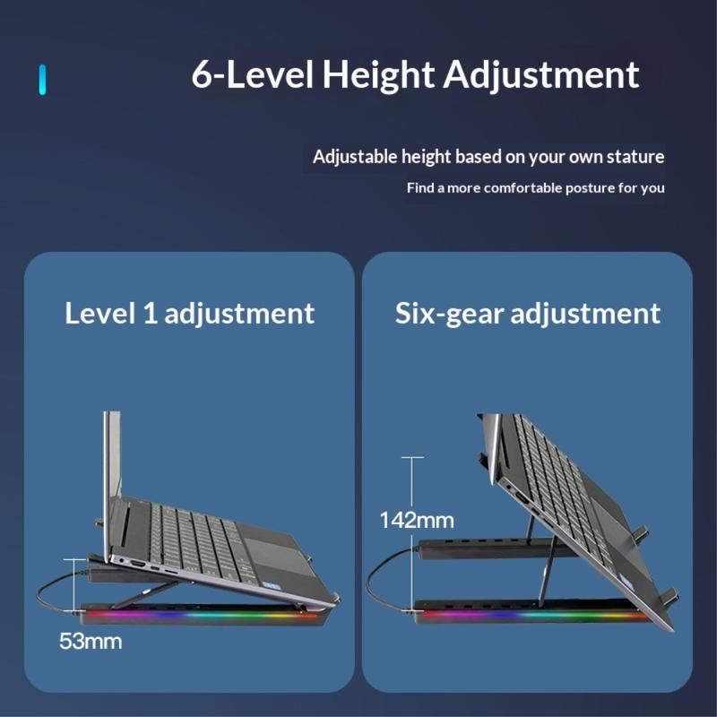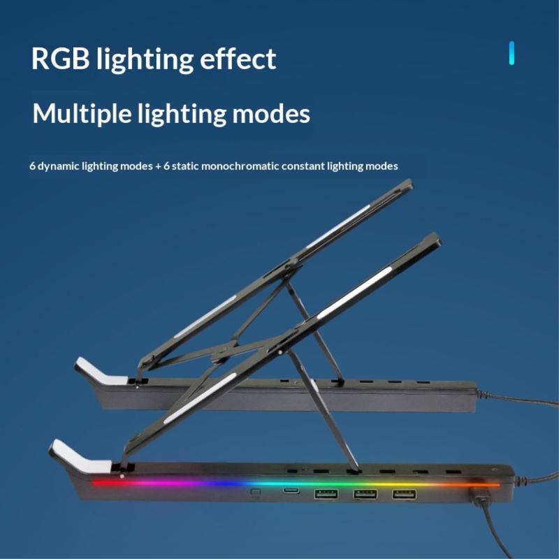 Adjustable Aluminum Laptop Stand with RGB Backlight and USB Hub