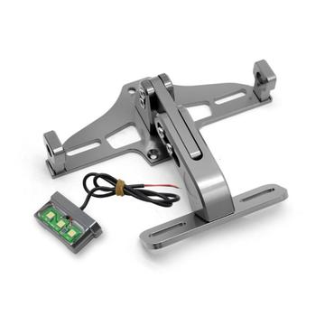 • Adjustable CNC Aluminum Alloy Motorcycle License Plate Holder Bike Light Telescopic Bracket with LED Light - Titanium Grey