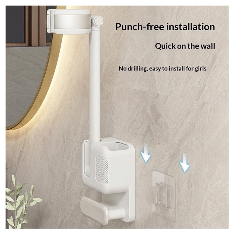 Make your daily hair routine easier and keep your bathroom more organized with this adjustable hands-free hair dryer holder. Designed for convenient wall mounting without drilling, this practical storage rack gives you a secure place for your hair dryer while freeing your hands for easier styling, brushing, or sectioning your hair.