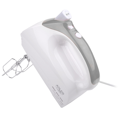 A very handy 300W mixer that is an indispensable tool for anyone who bakes cakes and cookies.It allows to use it at 5 different speeds, depending on what kind of food you prepare. Due to that fact it can be used as well to mix the flour with other ingredients as to whip egg whites. When needed, you can use the TURBO function. The mixer is very practical and reliable and can be utilised for a longer period of time without a risk ofit breaking down.