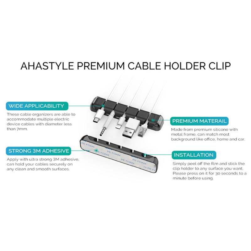 AHASTYLE PT125 Aluminum Alloy+Silicone Cord Organizer Charger Cable Management 5-Slot Cable Holder for Home Office Desk - Black