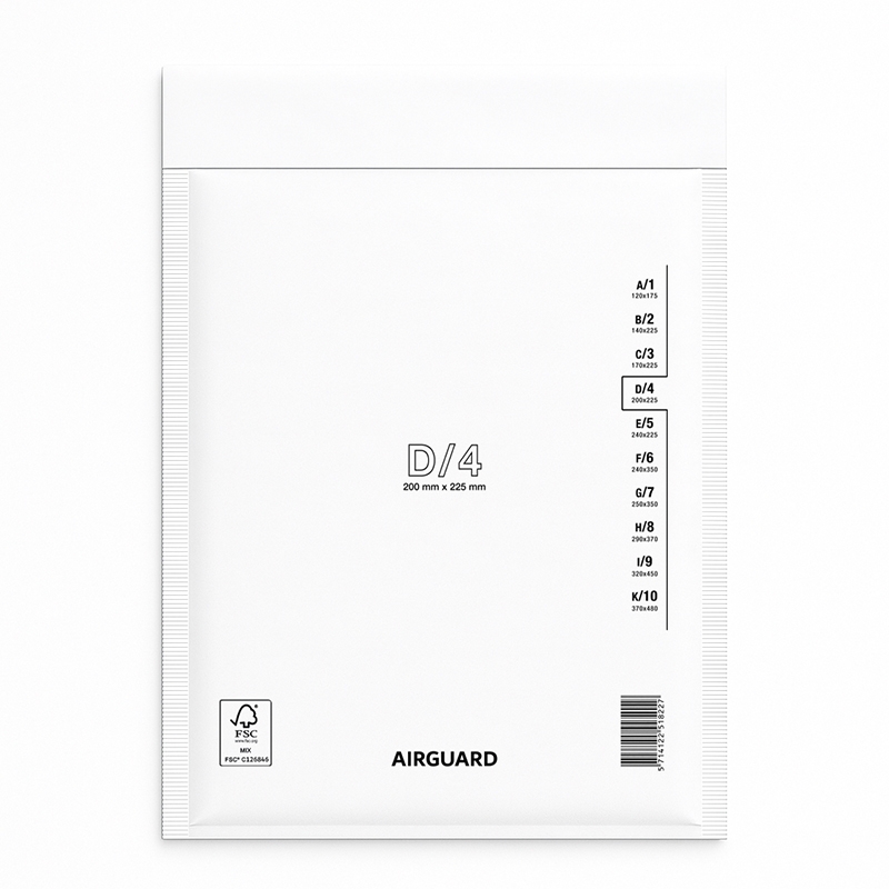 AirGuard Bubble Padded Envelope D4 - Internal Dimensions: 180x265mm, External Dimensions: 200x275mm