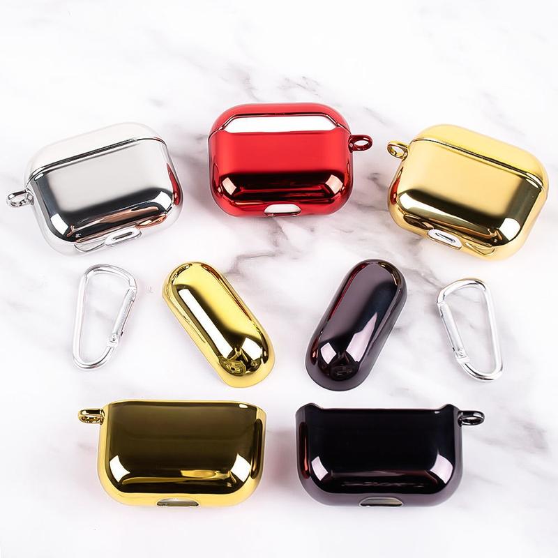 Electroplated Plastic Case for AirPods 4 - Protective Cover with Carabiner