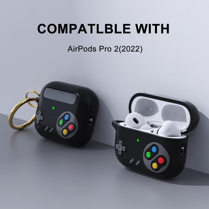 Silicone Case with Carabiner for AirPods Pro 2 - Game Console Design