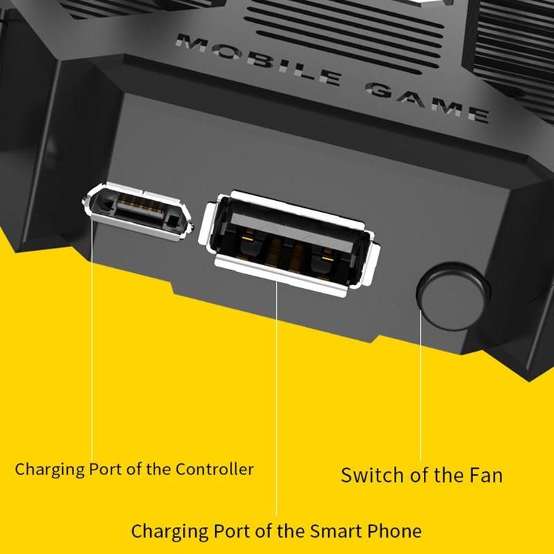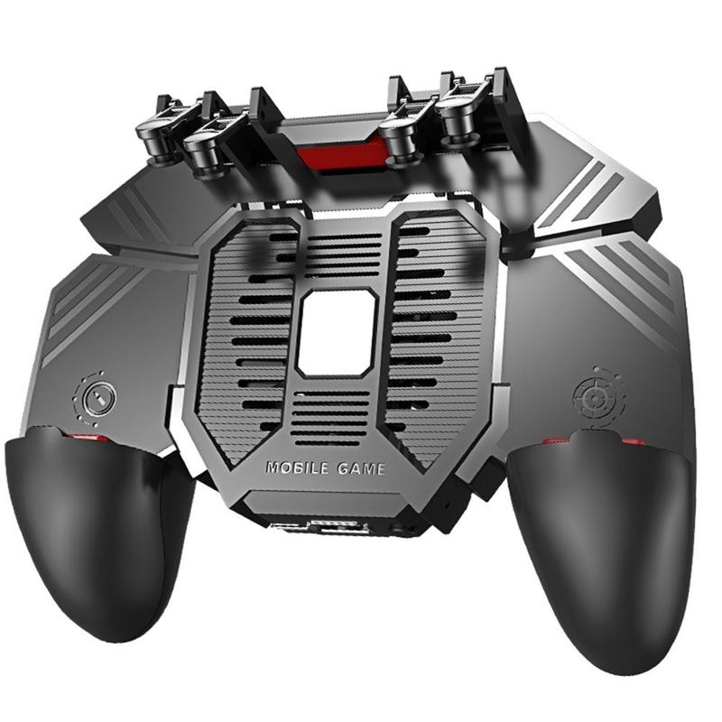 AK77 Mobile Game Controller PUBG Game Controller Gamepad with 6 Finger Gaming Trigger and Cooling Fan - Black/1200mAh Rechargeable Battery